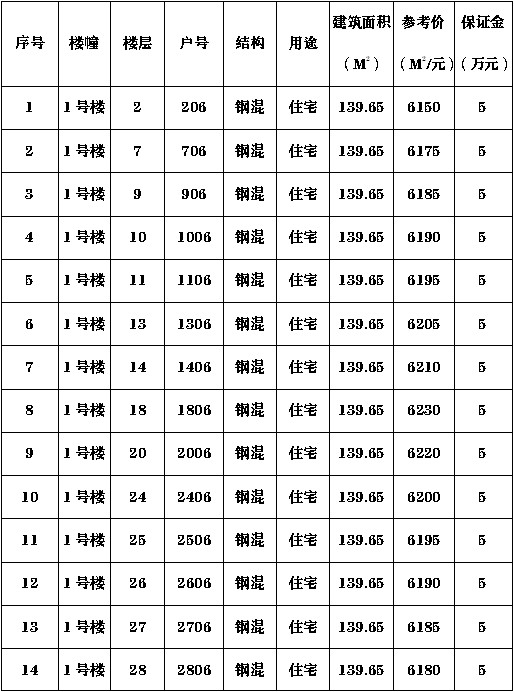 一、拍賣標的:坐落于瀘州市江陽區(qū)華陽街道學院西路372號“佳興茗苑”小區(qū)住房。(詳見房屋清單)